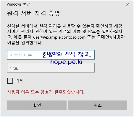 '사용자 이름 또는 암호가 잘못되었습니다.' 경고 메세지가 표시되며 다음으로 넘어가질 않습니다.