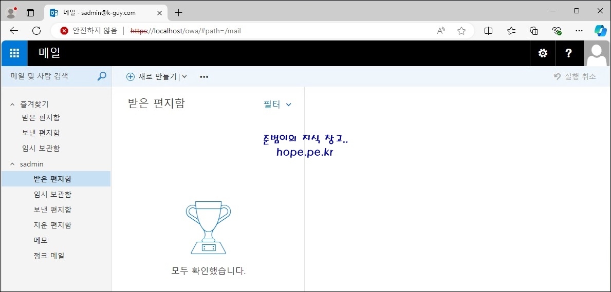 OWA 에 정상 접속함을 확인 합니다.