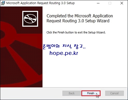 Microsoft Application Request Routing 3.0 Setup 창에서, 'I accept the terms in the License Agreement' 에 체크 후 'Install' 을 클릭 합니다.