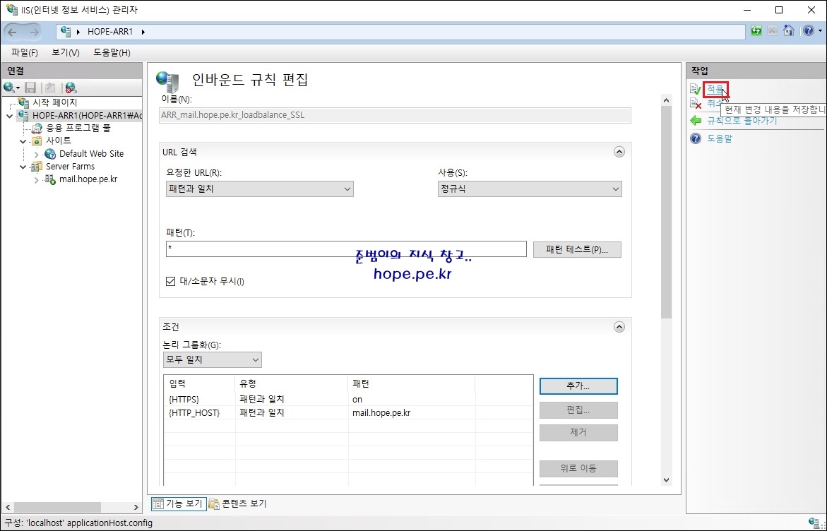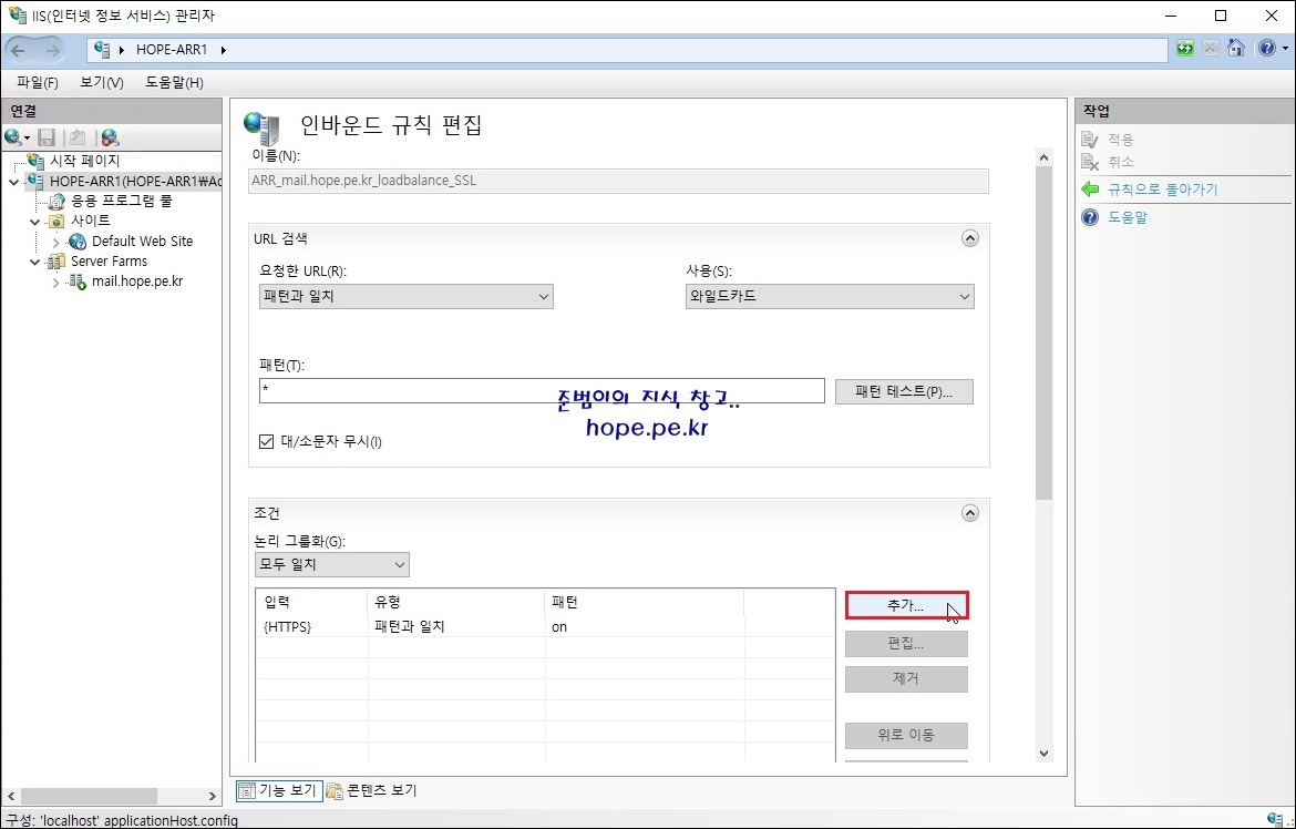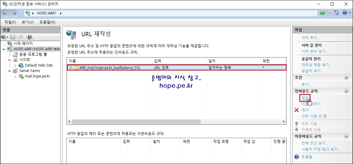 'ARR_서버 팜 이름_loadbalance_SSL' 클릭 후 '편집' 을 클릭 합니다. cf) HTTPS 규칙을 편집 합니다.