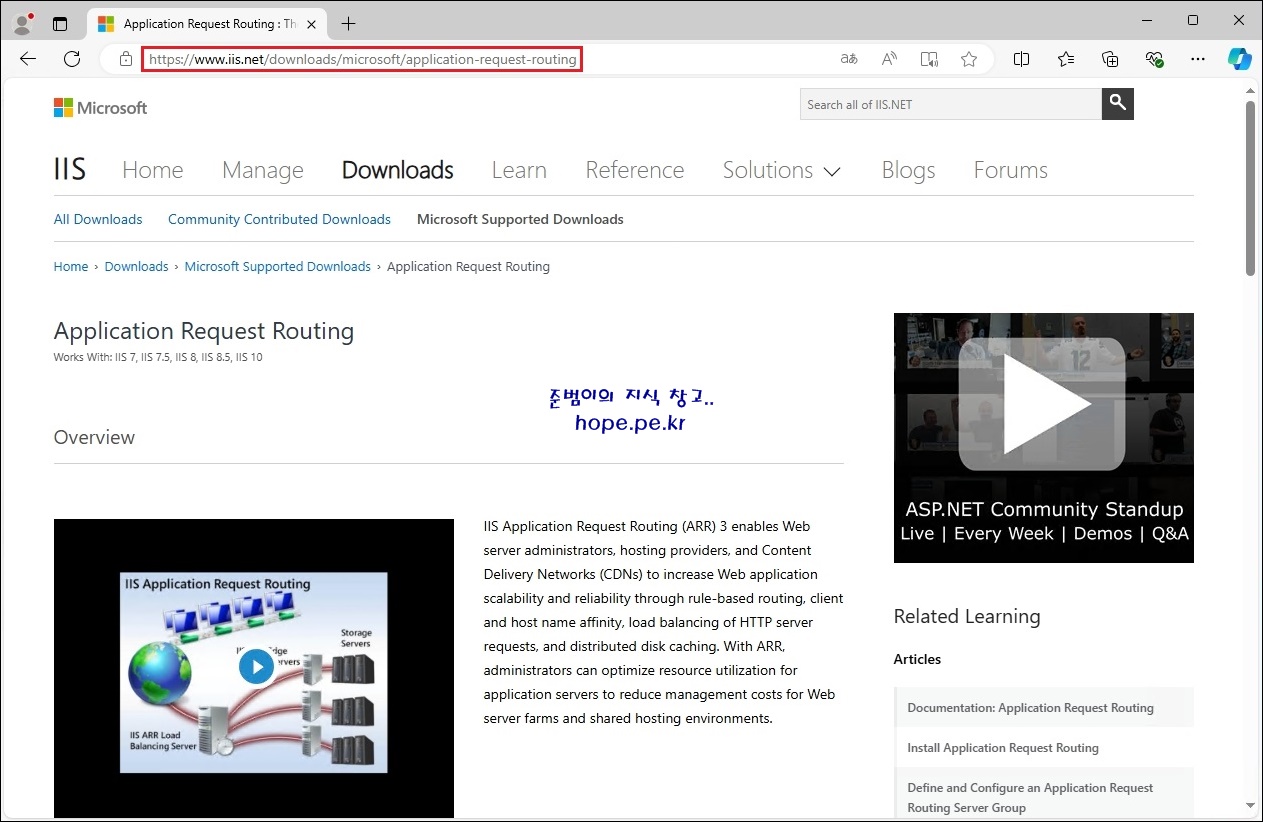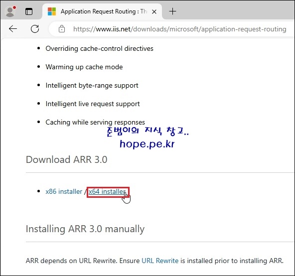 Application Request Rounting 다운로드 사이트 (https://www.iis.net/downloads/microsoft/application-request-routing) 에 접속 합니다.