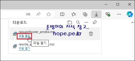 다운로드가 완료되면 'requestRouter_amd64.msi' 설치 파일에서, '파일 열기' 를 클릭 합니다.