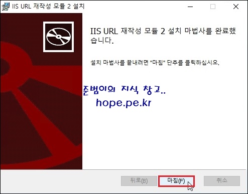 IIS URL 재작성 모듈 2 설치 창에서, '설치' 를 클릭 합니다.