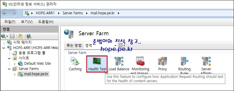 Server Farm 화면에서, 'Health Test' 를 더블 클릭 합니다.
