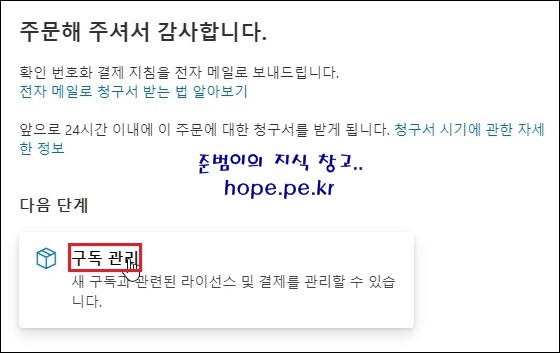 주문해 주셔서 감사합니다. 화면에서, '구독 관리' 를 클릭 합니다.