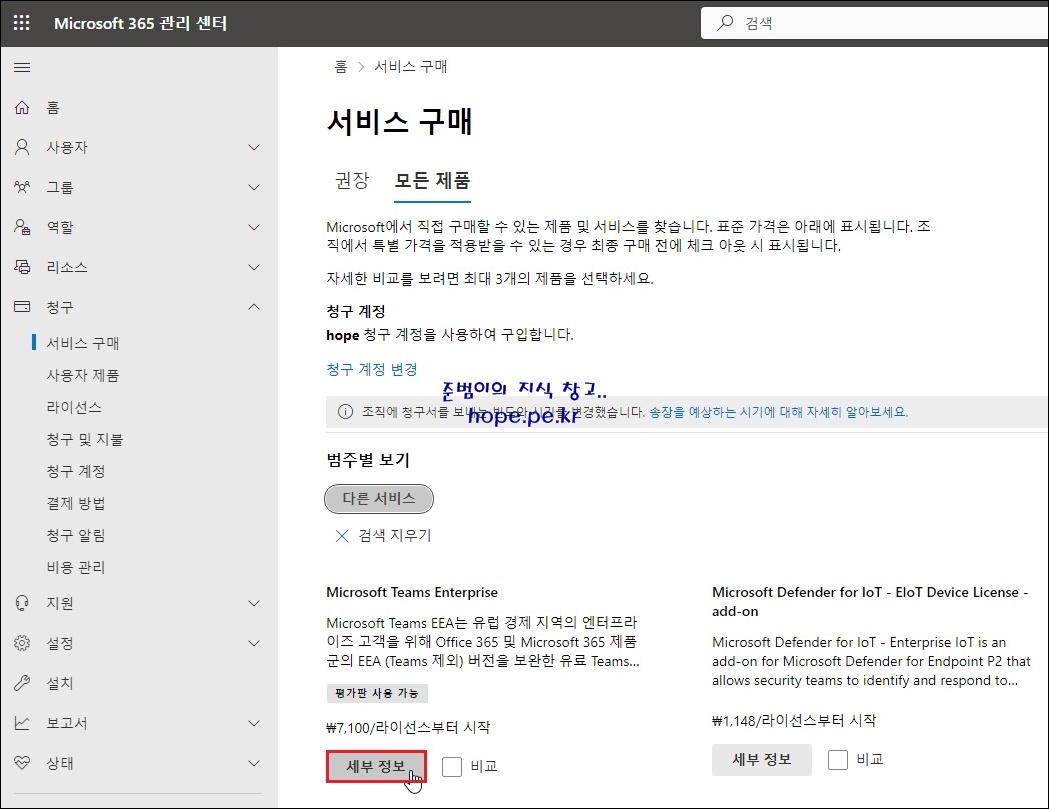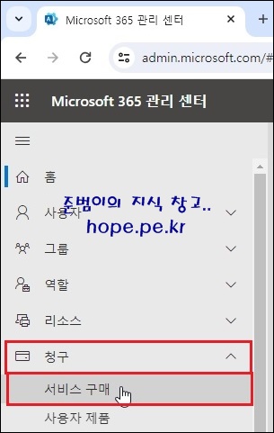 '청구 > 서비스 구매' 를 클릭 합니다.