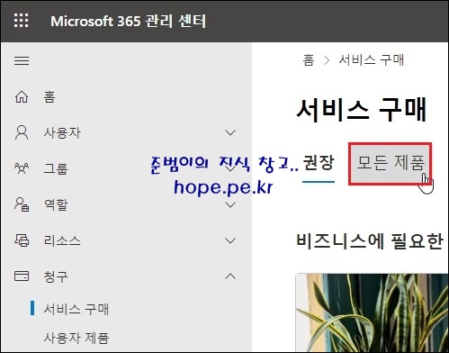 서비스 구매 화면에서, '모든 제품' 을 클릭 합니다.