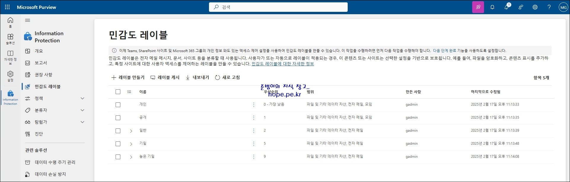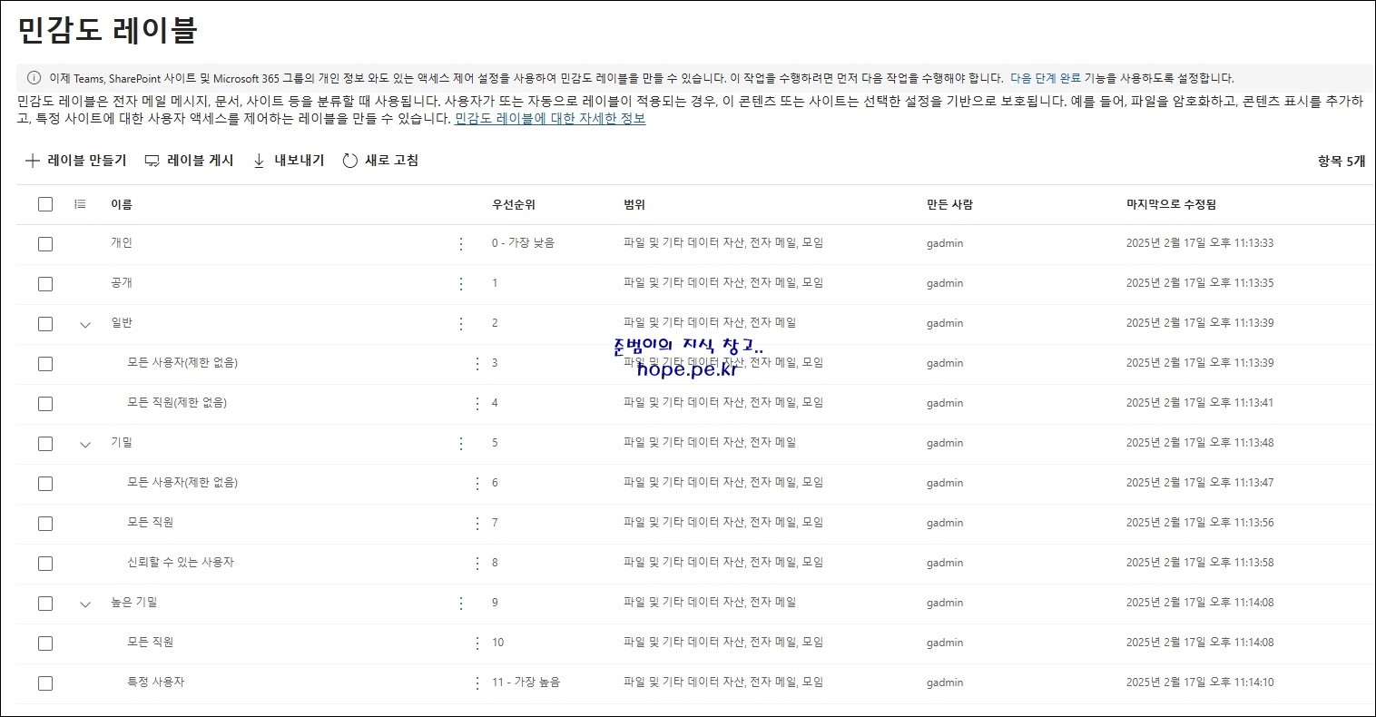 민감도 레이블이 자동으로 생성 됩니다.