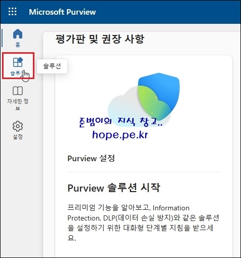 Microsoft Purview 관리 센터 에서, '솔루션' 을 클릭 합니다.