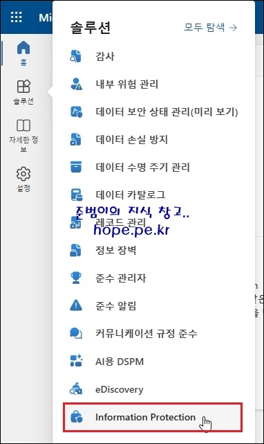 하단의 'Information Protection' 을 클릭 합니다.