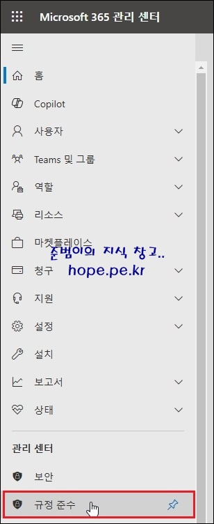 '규정 준수' 를 클릭 합니다.