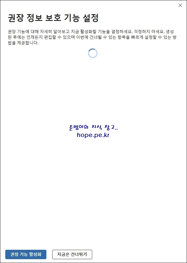 권장 정보 보호 기능 설정 화면에서, '권장 기능 활성화' 를 클릭 합니다.