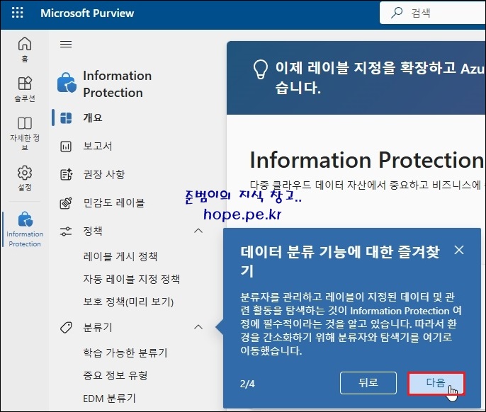 좌측 하단에 Information Protection 버튼이 추가 되고, Information Protection 화면으로 이동 됩니다.