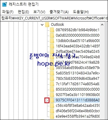 먼저 여러개의 Outlook 하위키 중에서 또 다른 하위키를 포함한 키를 확장 합니다.