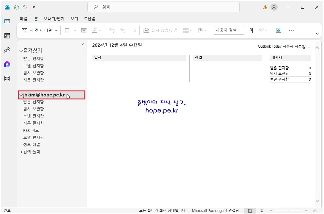 이제 Outlook 을 실행하면 다음과 같이 영문 표시 이름으로 변경됨을 확인할 수 있습니다.