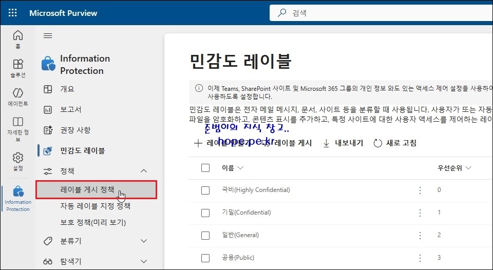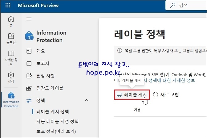 이번 포스팅에서는 "Microsoft Purview Information Protection(MPIP) 민감도 레이블 정책 게시" 에 대해 알아보겠습니다.