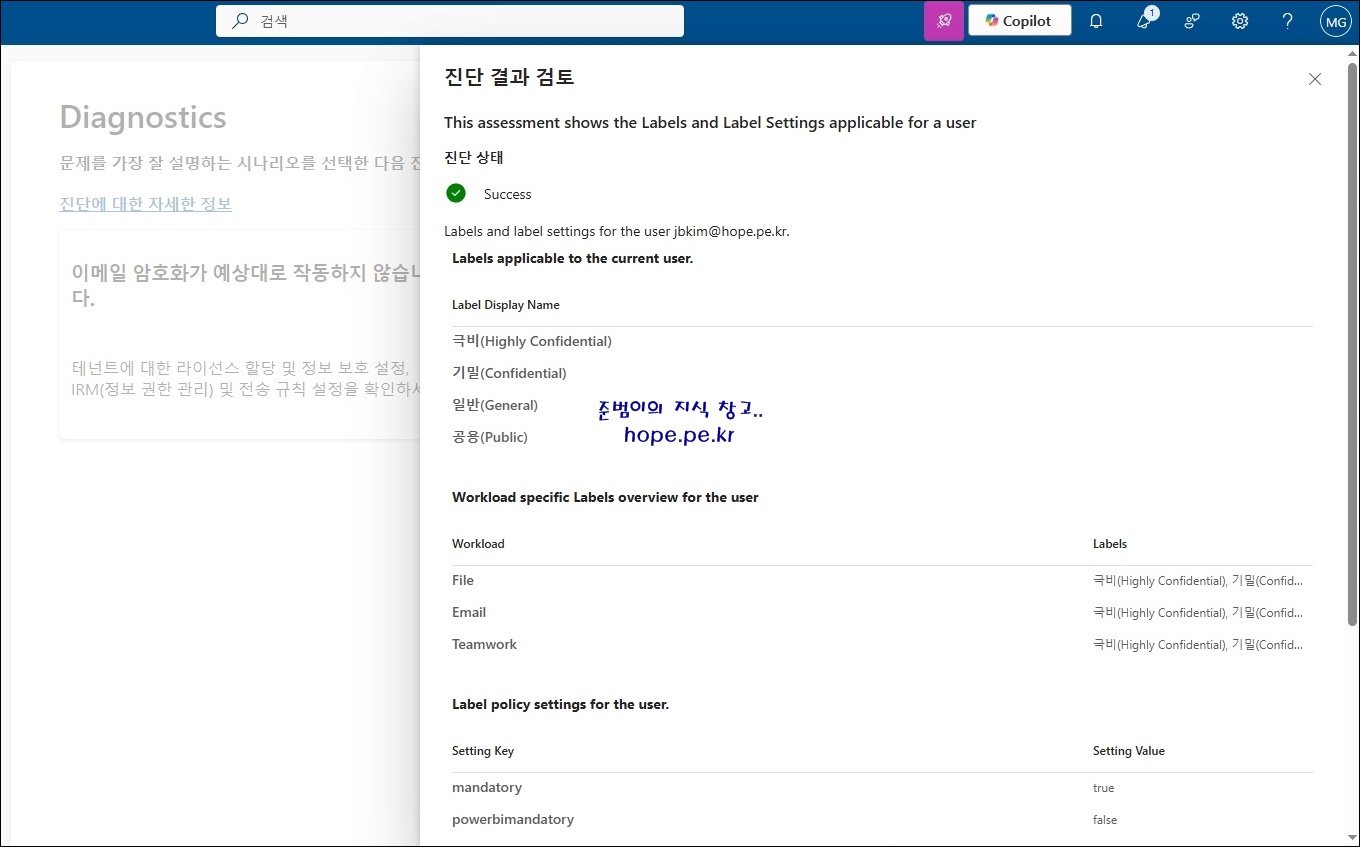 jbkim@hope.pe.kr 사용자는 '극비(High Confidential), 기밀(Confidential), 일반(General), 공용(Public)' 레이블을 사용할 수 있습니다.