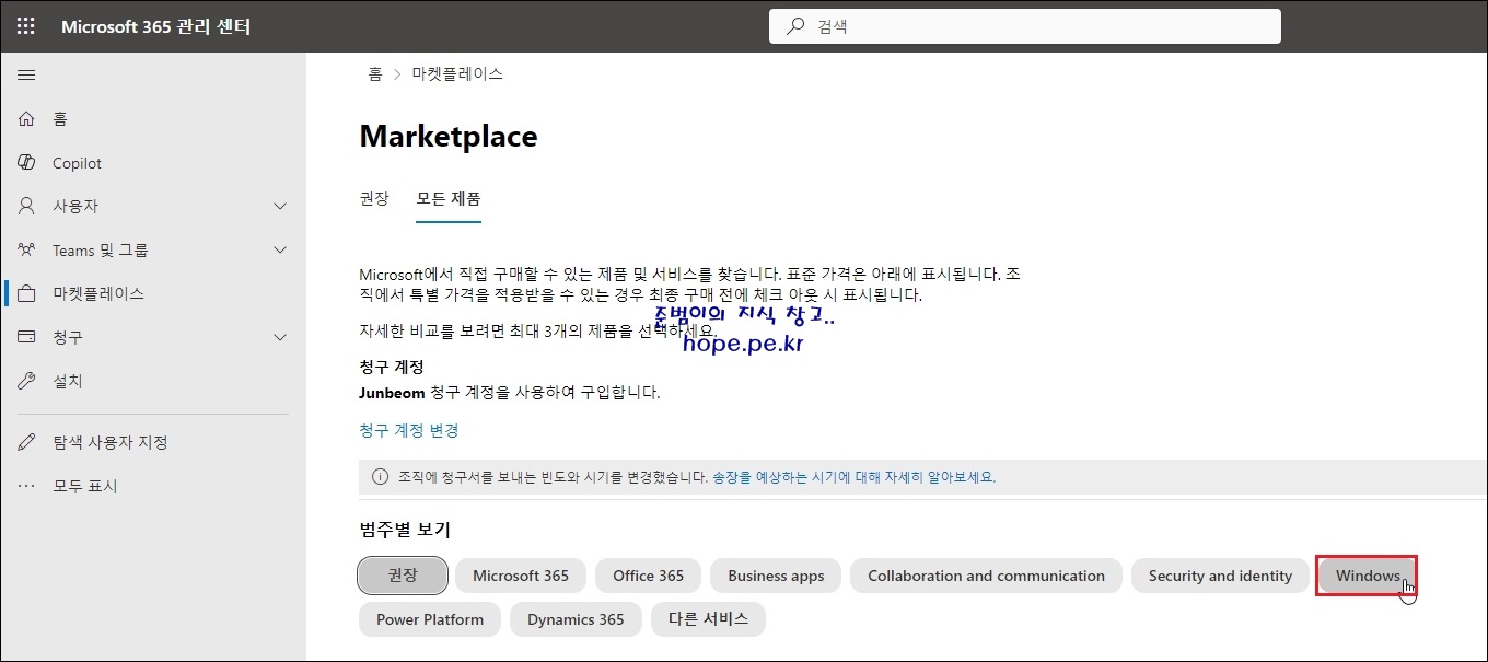 모든 제품 화면에서, 범주별 보기 > 'Windows' 를 클릭 합니다.