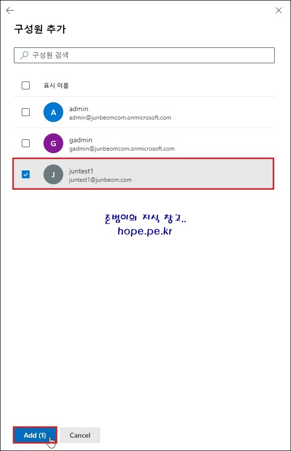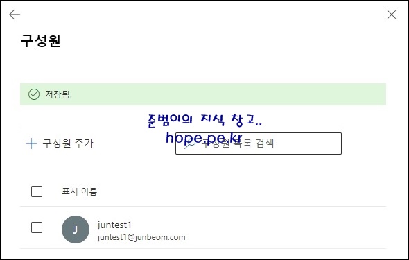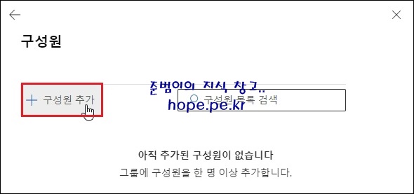 구성원 화면에서, '구성원 추가' 를 클릭 합니다.