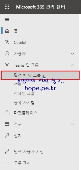 '활성 팀 및 그룹' 을 클릭 합니다.