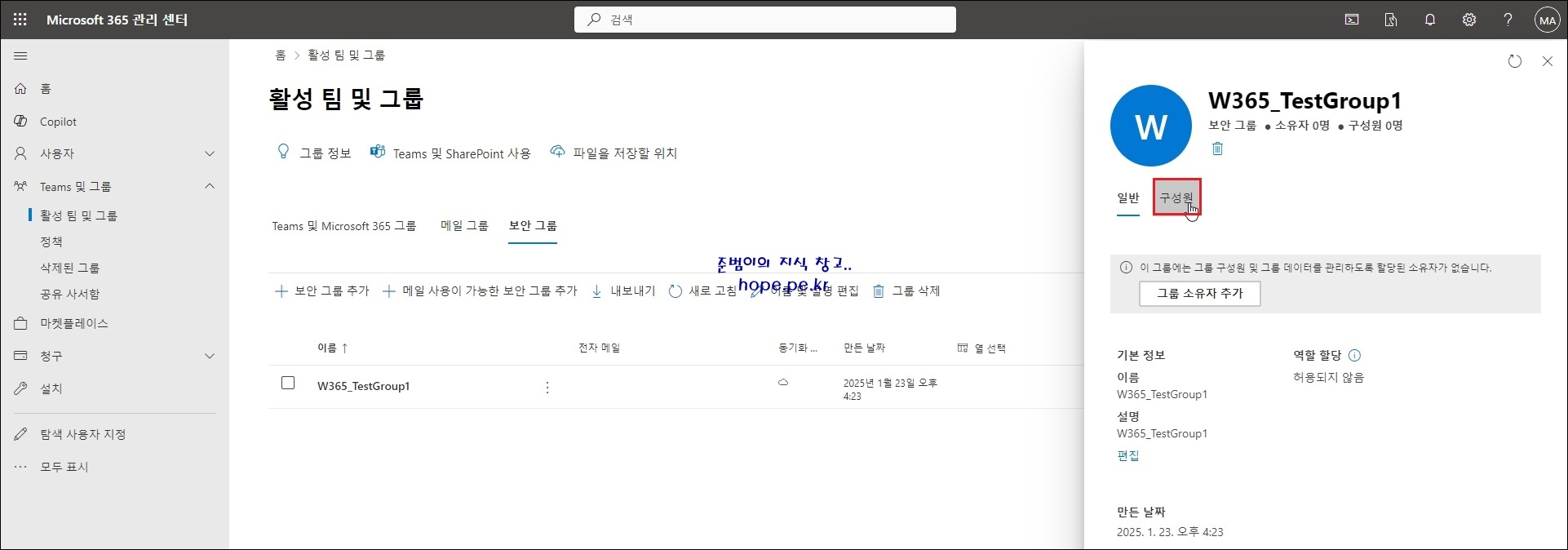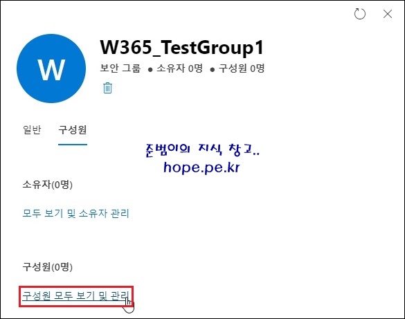 우측 그룹 상세 정보 창에서, '구성원' 을 클릭 합니다.