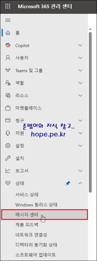 '메시지 센터' 를 클릭 합니다.